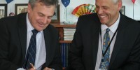 Chief Defence Scientist Dr Alex Zelinsky (left) and Northrop Grumman Australia Chief Executive Mr Ian Irving.